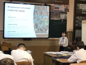 Прошли заседания КЛИО и Краевед. Ребята говорили о героических подвигах земляков- участников СВО. Вспомнили и почтили минутой молчания погибших ребят-выпускников нашей школы. В школьном музее прошли экскурсии к парте Героев, на которых старшеклассники рассказали о выпускниках школы- участниках СВО.